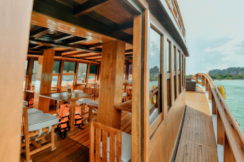 รับลูกค้าจากที่พักเดินทางมายังท่าเรือ ล่องเรือชมความงานของทัศนียภาพ หน้าผา หินย้อย ของอ่าวไรเลย์ และหาดถ้ำพระนาง พร้อมกับดำน้ำดูปะการัง และฝูงปลา บริเวณ เกาะไก่ และเกาะปอดะ ถ่ายรูปพร้อมชมความงามของท้องทะเล ยามพระอาทิตย์ตกดิน บริเวณทะเลแหวก รับประทานอาหารค่ำ แบบบาร์บีคิว บริเวณทะเลแหวกและล่องเรือชมความงามระหว่างเดินทางกลับฝั่ง